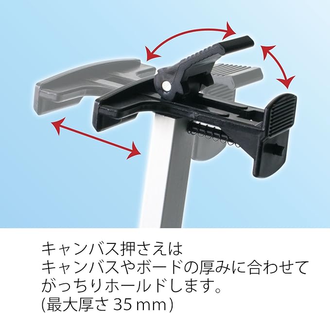 キャンバス受けをセットするツメが2箇所あり、コンパクトサイズでありながら最大727mm(F20号タテ)まで制作可能