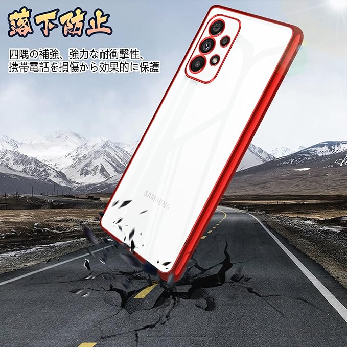 Galaxy A53 5G 用の ケース クリア tpu SC-53C SCG15 用の スマホケース 透明 ソフト 薄型 背面クリア 赤 ストラップホール付き 軽 耐衝撃 ギャラクシーA53 用の カバー レッド