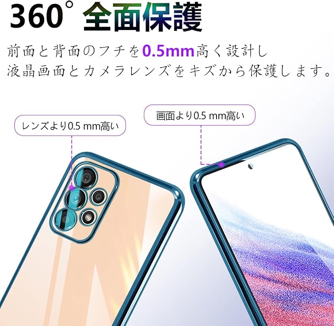 【360 全面保護】A53ケースの縁の僅かな段差により接地面との接触を避け、画面への傷を防ぐ設計です。また背面のカメラが地面に触れないようにカメラより高く設計されており、大切なカメラレンズを傷から守り、机に置いて画面を操作しても、がたつきがありません。