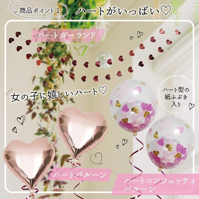 【ハートがいっぱい!】女の子が大好きなハートのアイテムがたくさん入って嬉しい♪ハートのガーランドやバルーンでお誕生日を華やかに飾ってみませんか?