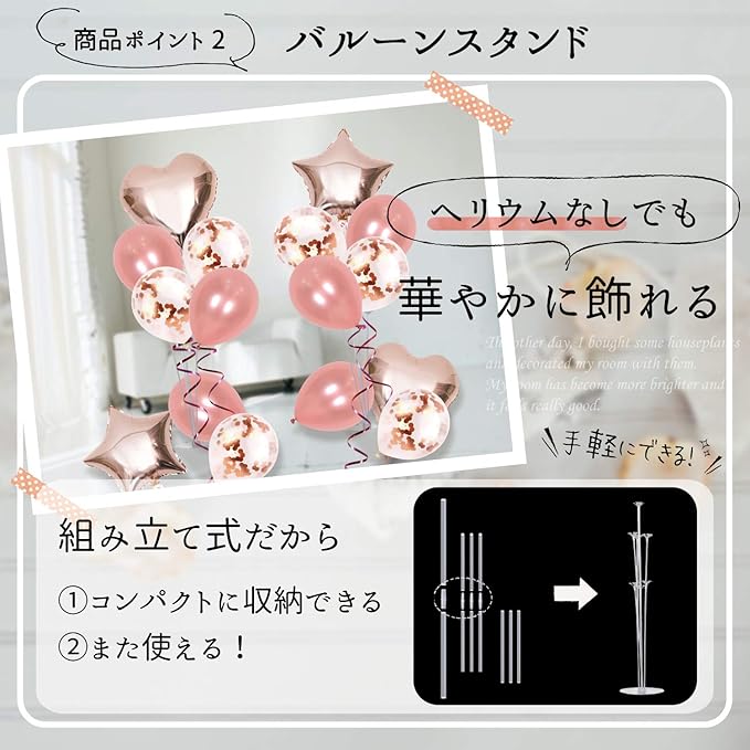 【バルーンスタンド付き】バースデーパーティーはもちろん、用途を限らず飾れるバルーンセットです。バルーンスタンドは2組セットになっており、スタンドを組み立ててバルーンを取り付けるだけで本格的で豪華な飾りがお手軽にお楽しみいただけます。