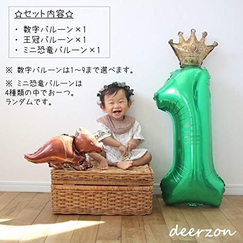 恐竜 数字 バルーン セット 誕生日 飾り付け 男の子 女の子 巨大 風船 バースデー 王冠 装飾 (数字「1」)