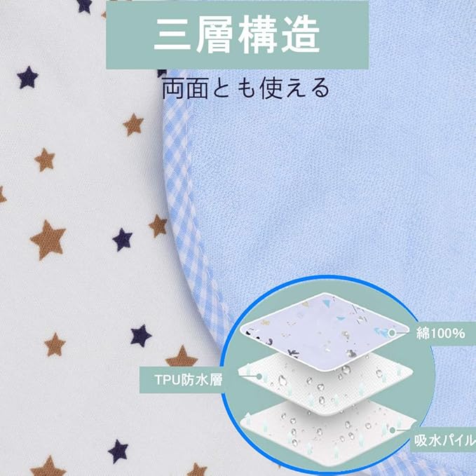 おむつ替えシート 防水 おむつ替えマット - おねしょシーツ ベビー用 おでかけ防水シーツ 携帯 綿100% 2枚セット45 70cm (星+星50*70㎝2枚セット)
