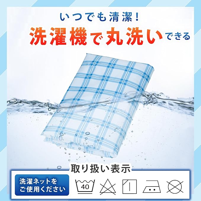 【商品仕様】:サイズ/約(最大)幅117 長さ120cm(ゴムで幅調節可能)、カラー/ブルー、柄/チェック柄、内容/1枚、材質/ポリエステル