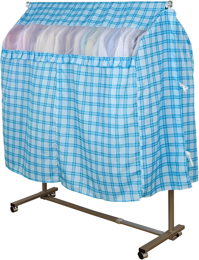 アストロ ハンガーラックカバー ブルー チェック柄 (最大)幅117 長さ120cm 横まですっぽりカバー ポリエステル 洗える ウォッシャブル 衣類カバー 洋服カバー パイプハンガー 埃除け センタースリット 出し入れスムーズ メッシュ窓 ずり落ち防止 固定用ひも付き 防塵 簡易クローゼット ワードローブ代わり 193-02