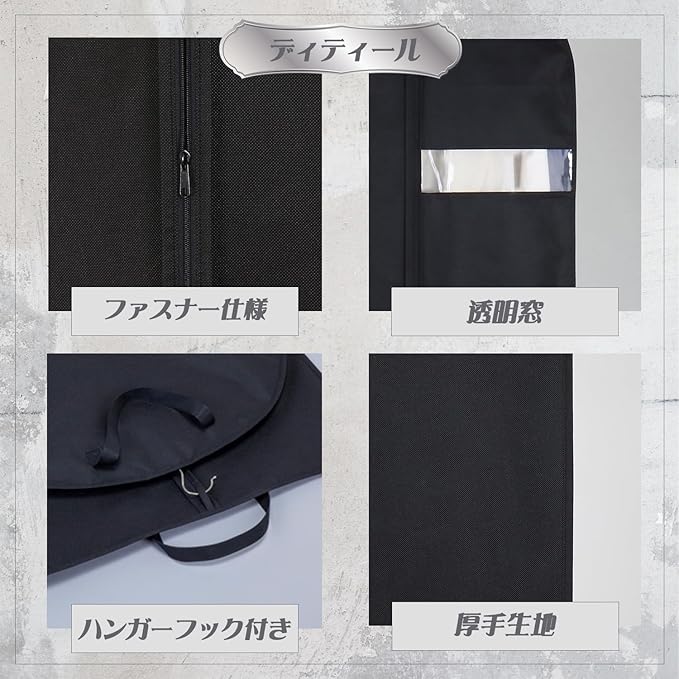 通気性に優れた不織布製:大切な衣類をホコリなどの汚れからガード。下部も縫製されているので、全方位からのホコリの侵入を防ぎます。