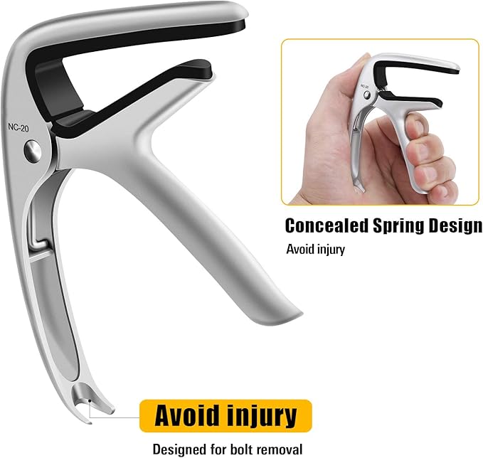 プロのパフォーマンス: 強力なスプリングが装備されているので、カポタストは楽器に合わせて圧力を調整し、しっかりと固定します。ノイズがないことを保証する。