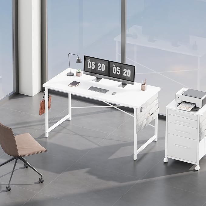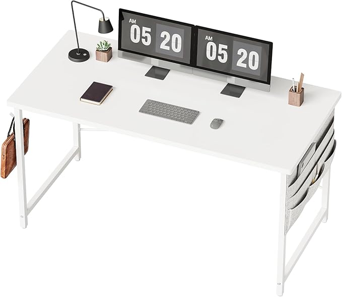 机 デスク パソコンデスク pcデスク 幅120*奥行55cm つくえ 収納袋付き勉強机 フック付き学習机 組立簡単 テレワーク 白い