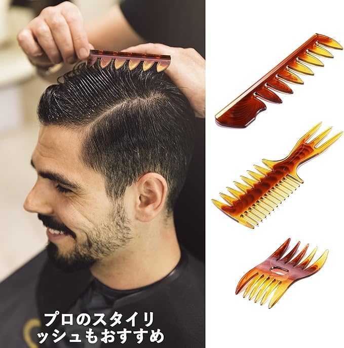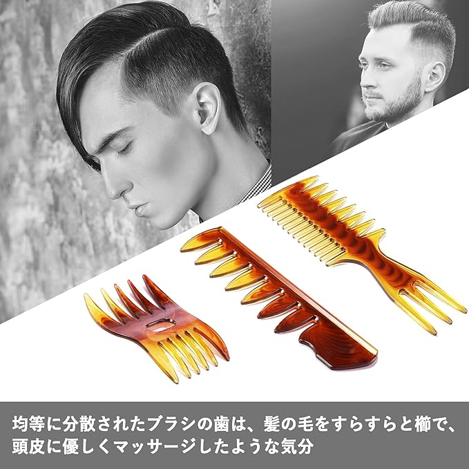 【3種太めの櫛】くし メンズ 人気コーム メンズ特徴は3種類の粗めコーム, 手軽に手グシ感覚で髪の毛の撫でつけ・スタイリングが可能。 メッシュコームてコームオーバースタイルを演出できます。スタイリングコーム櫛の使いやすさはスタイリッシュも家庭も使用できます。