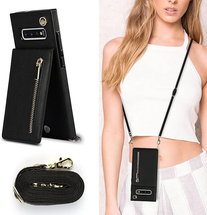 Jaorty 財布型ケース Samsung Galaxy S10 SC-03L SCV41対応スマホケース 携帯カバー 斜めがけ ショルダー 肩掛け PU皮革+TPU 背面カード収納 ステント機能 ワイヤレス充電対応-ブラック