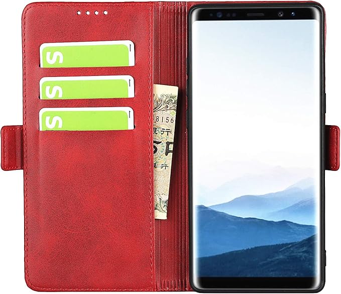 Galaxy Note8ケース 手帳型 ギャラクシー ノート8手帳ケースSCV37 SC-01KカバーJaorty 2色革内蔵マグネット PU合成皮革 財布型 カード収納 耐衝撃 スタンド機能 人気 4色-レッド +ブラック