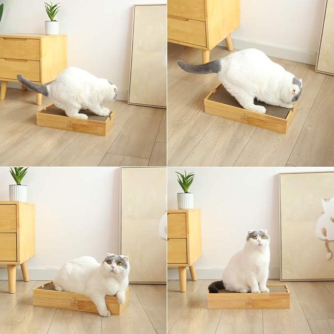 【インテリアに合う】箱は純木製、高級感があります、インテリア性を持たせたおしゃれなデザインの爪とぎなので、ぜひ、お部屋や雰囲気に合わせてお使いください。