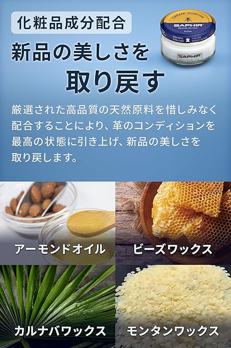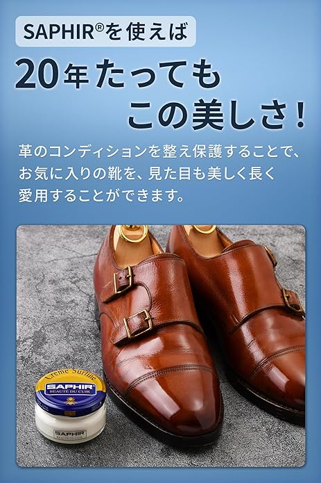 サフィール(SAPHIR)は、妥協を許さない品質と仕上がりの美しさで、世界的に有名なレザー製品ブランドや靴職人などに愛用されています。国内外の高級百貨店や、セレクトショップのバイヤー達にも認められ、こぞって販売されています。