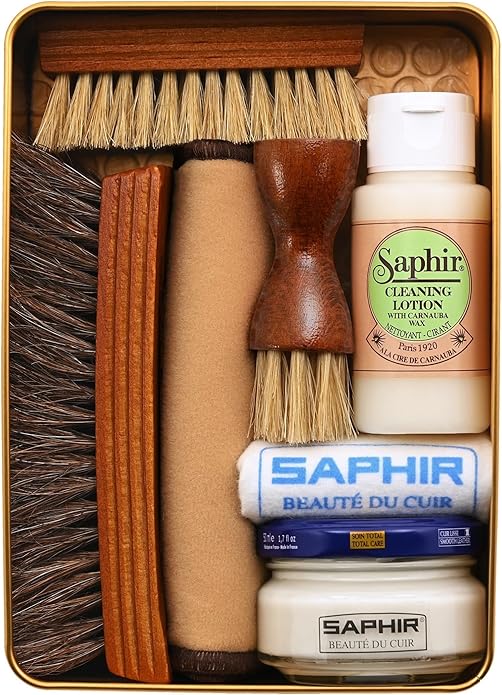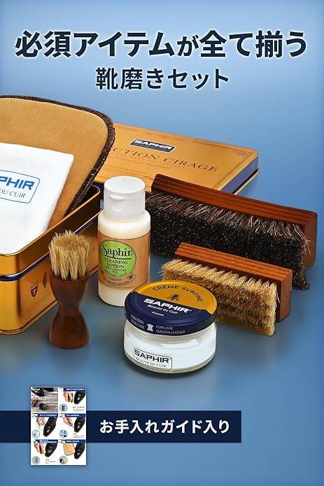 高品質なSAPHIR(サフィール)の靴クリームと、靴磨きの必須アイテムが全て揃った、高級 靴磨き セットです。ブランド公式ショップ限定の特別お得なセットです。