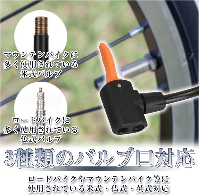 3種類のバルブコネクタで、タイヤの空気入れはもちろんボールや浮き輪などの空気入れにも適しています。アダプタを変換する手間もないのでこれ1台で多用途に、ご使用いただけます。