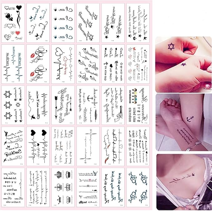 タトゥーシール - 30枚入 ステッカー かわいい 英文字 長持ち 防水 刺青 入れ墨 ボディーアートシール 防水 腕、足、体、胸、肩、背中に簡単貼る