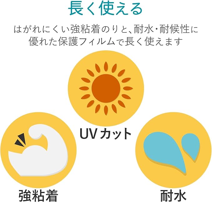 ■耐水加工を施したフィルムにUVカットフィルムを貼り重ねることで、耐久性を向上しています。
