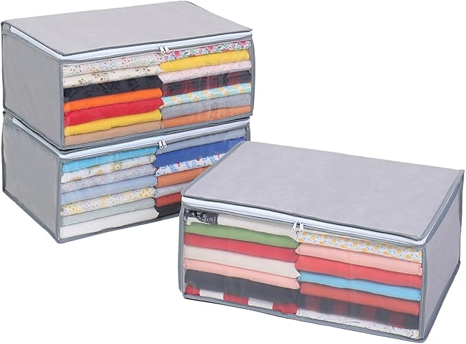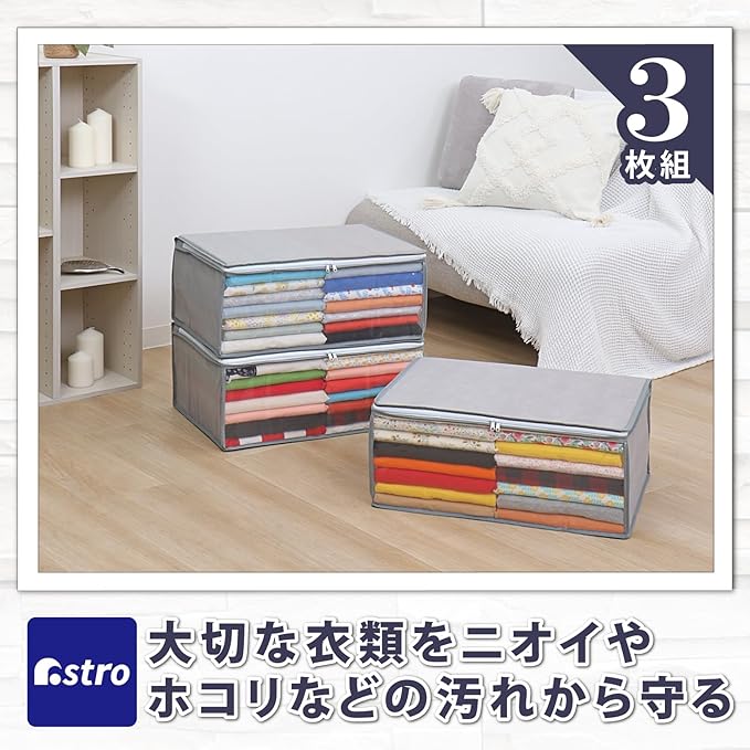 アストロ 衣類収納ケース 3枚組 通気性の良い不織布がホコリなどの汚れをガード 中身の見える透明窓付き 三方開きのファスナーで出し入れしやすい 衣装ケース 奥行35cm 洋服 衣類 小物 収納ボックス 蓋付き クローゼット 押入れ 保管 ほこり 対策 グレー 167-01