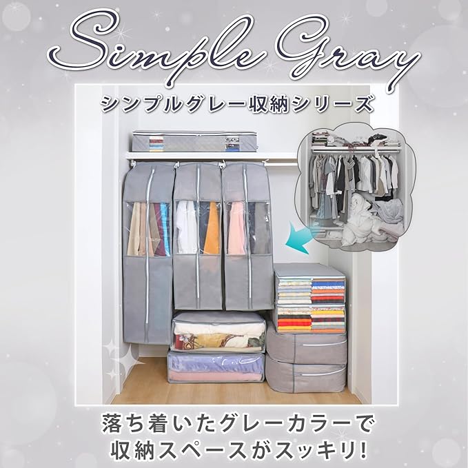 【オフシーズンの保管に】:次のシーズンまで衣類を大切に収納・保管できる。落ち着いたグレーカラー。
