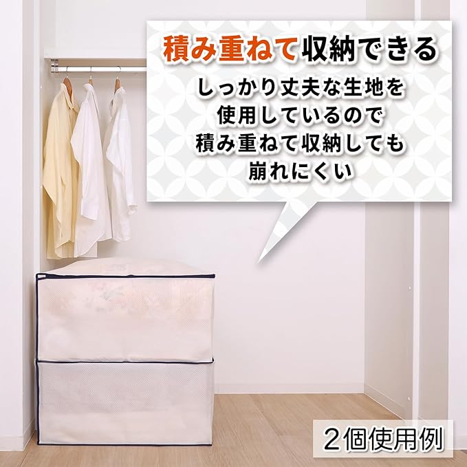●丈夫な生地なので中に布団を入れた状態であれば、積み重ね収納も可能。