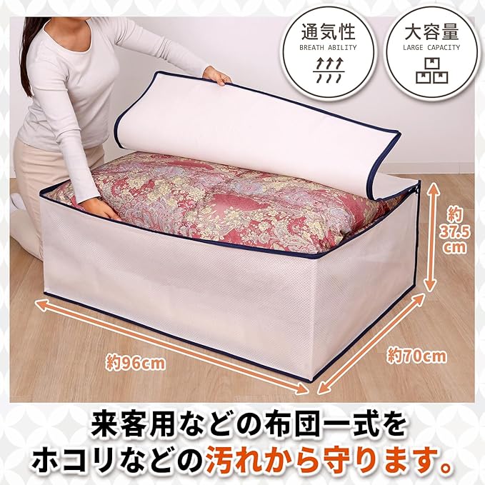 【3層構造でしっかり丈夫・まとめて保管】:3層構造で破れに強くしっかり丈夫。来客用などの布団をまとめて保管。