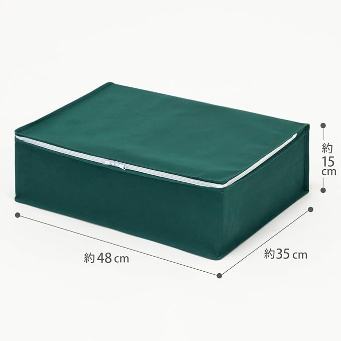 【商品仕様】:サイズ/約幅48 奥行35 高さ15cm、カラー/グリーン、内容/2枚、収納目安(1ケースあたり)/厚手セーター:約3~5枚・薄手シャツ:約13~15枚、材質/ポリプロピレン