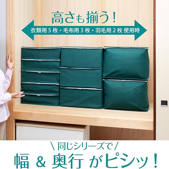 通気性が良くホコリを通しにくい生地のため、衣類や寝具の収納に適しています。