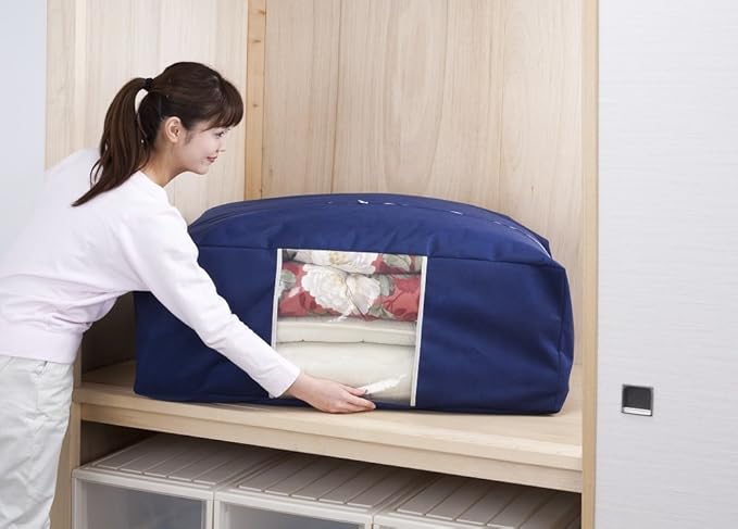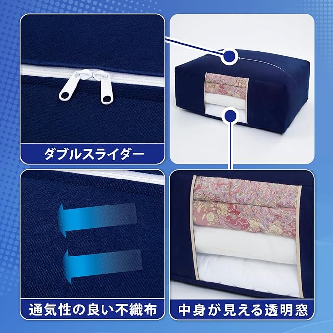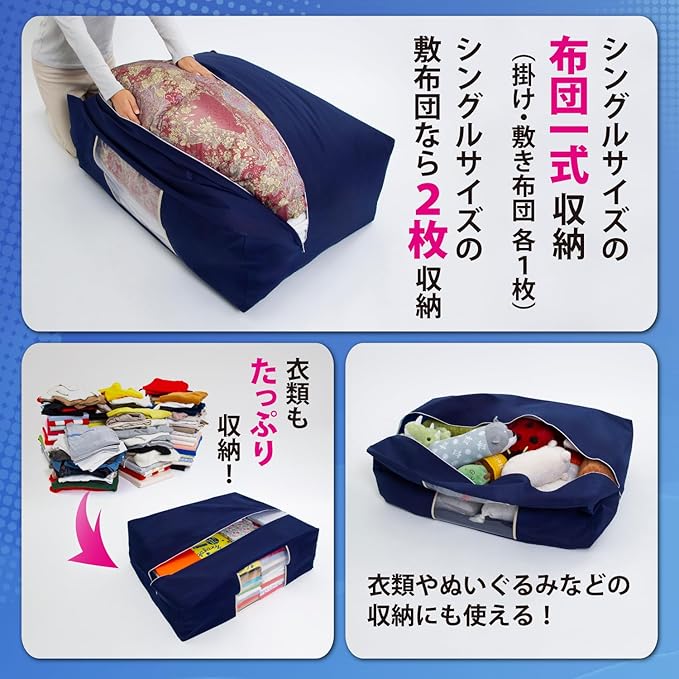 アストロ 布団収納ケース 布団一式 通気性の良い不織布がホコリなどの汚れをガード 3層構造の厚手でしっかりとした生地 透明窓付き 布団収納 布団袋 引っ越し ネイビー 177-06