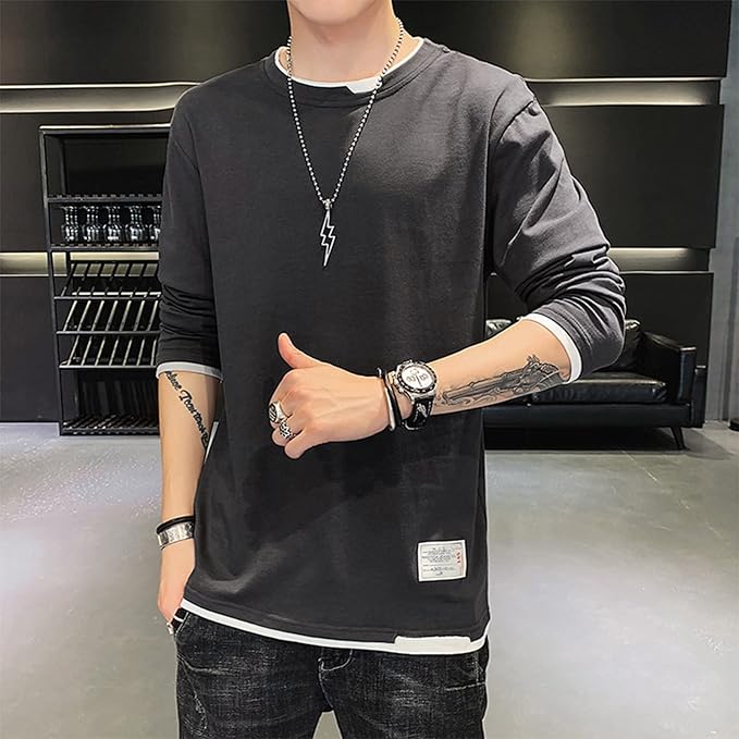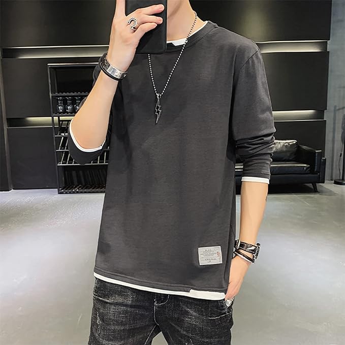 [Aroniko] 長袖 tシャツ メンズ ロングtシャツ カットソー ロンt レイヤード 100%綿 ゆったり カジュアル 無地 ファッション 丸襟 快適 大きいサイズ 春 秋 冬 4カラー
