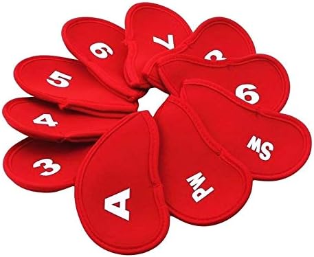 ゴルフクラブ 番手付 見やすい ヘッドカバー アイアンカバー 10枚セット レッド
