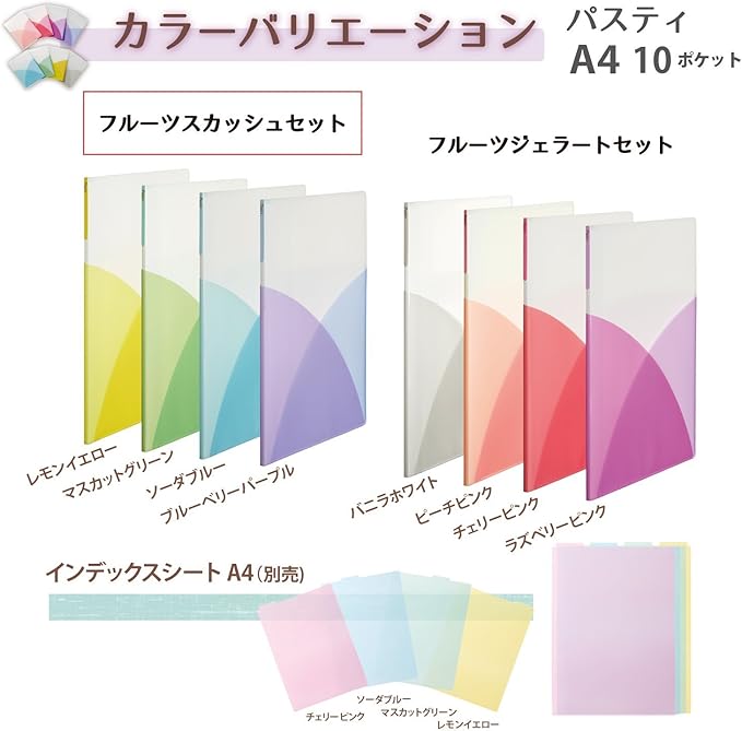プラス クリアファイル A4縦 10ポケット Pasty フルーツスカッシュ 4色組