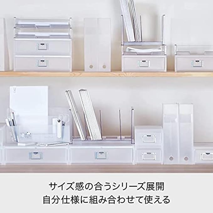 ステーショナリー収納に便利なMEDIXシリーズ。様々な機能を持ったモジュールアイテムを収納量に合わせ多段化したり組み合わせたりする事で、自分の目的通りの収納システムが構築できます。