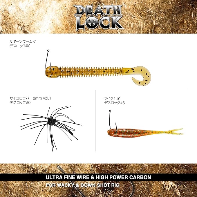 Nogales/ノガレスDEATH LOCK/デスロック◆入り数:10個★スレバスへの最終兵器。まさに掛けたら離さない超細軸・超軽量 フックです。超タフコン時やスモールマウスに威力を発揮。超軽量なのでワームのアクションがよりナチュラルになり、ワームの能力を最大限に生かします。