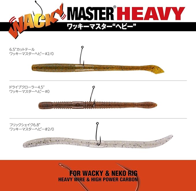 ビッグバス狙いのヘビーワイヤーフック。ワッキーでのワーム保持力を実現するための専用設計です。 流行のベイトネコリグや、スピニングタックルでのパワーフィネスにも最適。 ハイパワーカーボン素材による強度と、グランポイントによる鋭さ&耐久性を獲得しています。