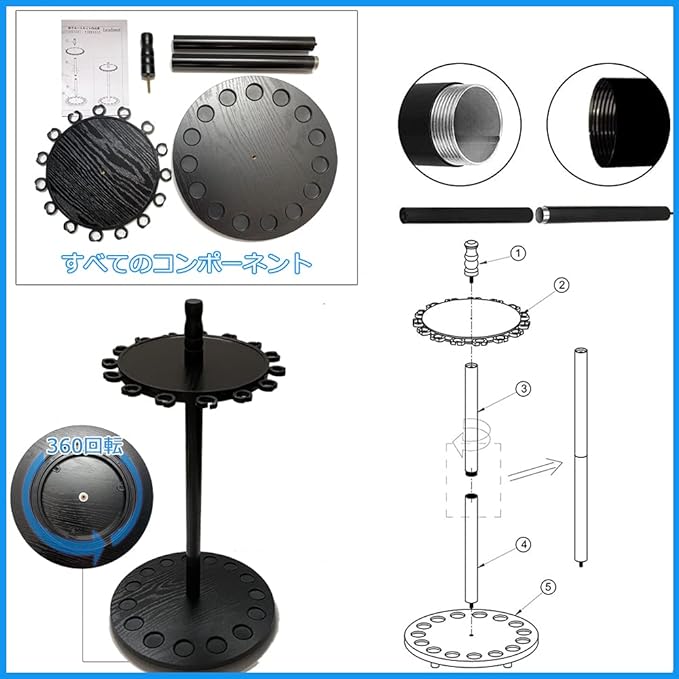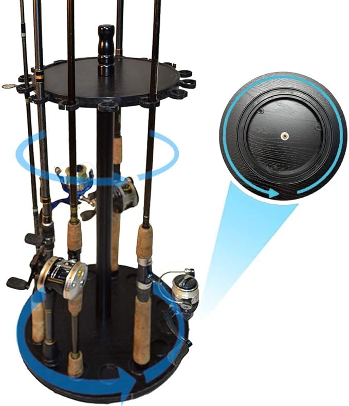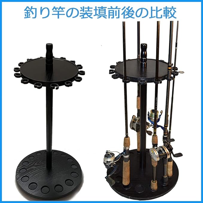 ロッドホルダー 丸型デザイン360度回転釣竿 スタンド 釣15本の釣り竿を収納可能竿収納ラック 高度な釣竿展示台 日本語説明書付きで組み立ても簡単 (ラグジュアリーブラック釣竿竿立て)