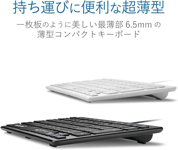一枚板のように美しい最薄部6.5mmの有線薄型ミニキーボードです。