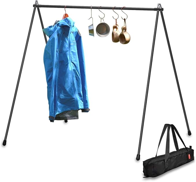 【軽量&コンパクトで耐久性に優れている!】 アウトドアハンガーラックの登場! 衣類はもちろん、シュラフや小物を掛けるのに便利! アウトドアシーンにオススメなハンガーラックの登場です。 材質には軽量で強度あるA7075超々ジュラルミンを採用し、 コンパクトに収納することができる優れたアイテム!