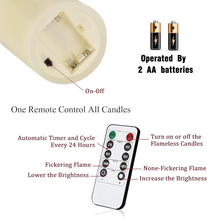 電池:単3(AA)2本(別売り)電子キャンドルはパラフィンでできています。日光や他の高温環境から離れ、溶けないようにしてください。