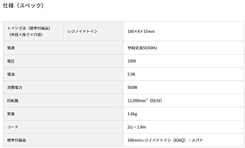 標準付属品:レジノイドトイシ(A36Q)・スパナ