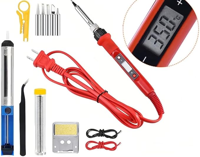 【収納ケース無し】 デジタル表示 はんだごてセット はんだごて 半田ごて 液晶表示 デジタル式 180℃~500℃ 温度調節 (デジタル表示 (赤80w豊富セット)