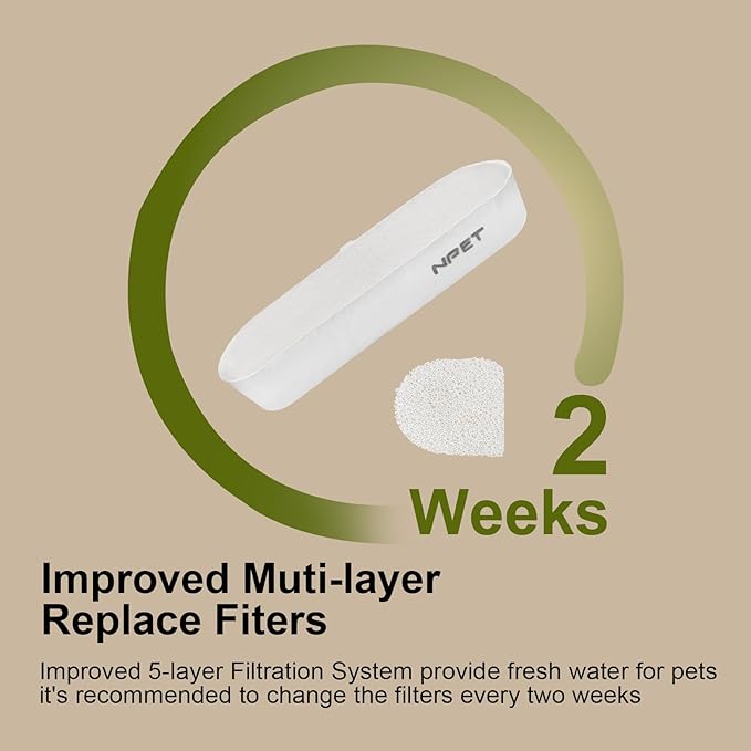 【改良点1】改良された5層ろ過システム。1.高密度スポンジがゴミを除去します。2.活性炭が臭いを効果的に取り除きます。3.イオン交換樹脂が硬水を軟化する。4.ナノシルバ一ネオが細菌の繁殖を抑える。5.不織布が粘液の生成を防ぎ、旧バージョンよりも水を清潔に保ちます。