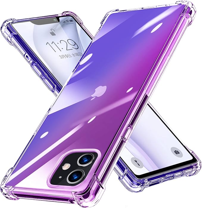 対応 iPhone 11 用の ケース 透明 クリア 耐衝撃 11 カバー 耐衝撃 クリア 透明 TPU 薄型 軽量 滑り止め 黄変防止 柔軟 Qi充電 衝撃吸収 指紋防止 米軍MIL規格取得 ワイヤレス充電に対応 カメラ保護 カバー 紫+青 331-ip 11-04