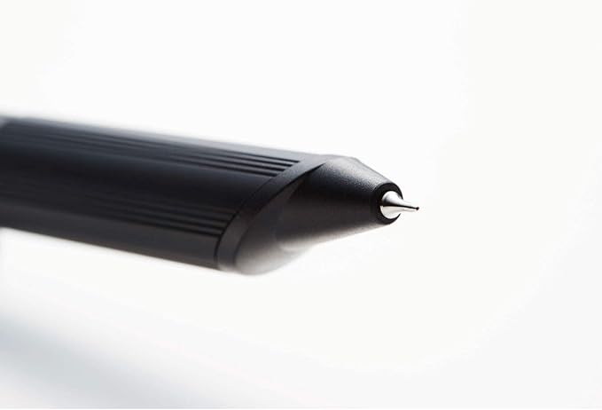 ペン先は、あえて芯をずらした偏芯形状となっており“スピロテック"機構と一緒に作用し、本体軸に対しリフィルが常に真っすぐペン先に向かって出てくるため、単色軸のような安定した筆記感が得られ、細かい場所へ書き込みやすい仕様となっています。
