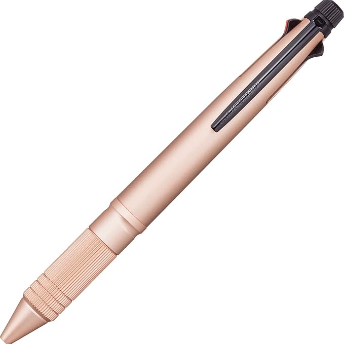 色:ピンクゴールド ~人はずっと、想いをペンに乗せてきた~イラストレーター『金安亮』さんとコラボした、ジェットストリーム4&1限定ギフトパッケージ【限定ギフトパッケージ】イラストレーター『金安亮』さんがデザインした限定ギフトパッケージ。ギフト向け商品であることが一目でわかる世界観のデザインを採用しました。「伝えるって、ギフトだ」ジェットストリームを贈って、気持ちを伝えよう。ジェットストリーム4&1メタルについて■ 先軸と消しゴムキャップにアルミ素材を採用先軸と消しゴムキャップにアルミ素材を採用したことにより、従来品よりさらに耐久性が高まり、汗や汚れにも強くなりました。またさらりとした触感で、手になじみます。■独特のローレット加工アルミを削り出して作られた消しゴムキャップと先軸は、耐久性と洗練されたデザインを両立。縦溝を基つつ、指当たり部分に横溝を施した独特のローレット加工は手になじみ、ホールド性を向上させます。■ 落ち着いたカラーリングと軸色に合わせたクリップアルミの質感を生かしつつ、ビジネスシーンにマッチする落ち着いた色合いです。 クリップも軸色に合わせて光沢仕様とマット仕様を使い分けることで、より上質で洗練された印象を与えます。