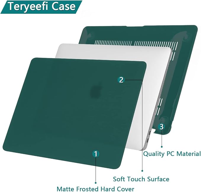 Teryeefi 2021 2020 2019 MacBook Air 13 インチ ケース TOUCH ID搭載 (モデル:A2337 M1/A2179) 対応+日本語キーボードカバー + スクリーンプロテクター+ダストプラグ 排熱口設計 軽量 プラスチック 保護カバー,松葉色