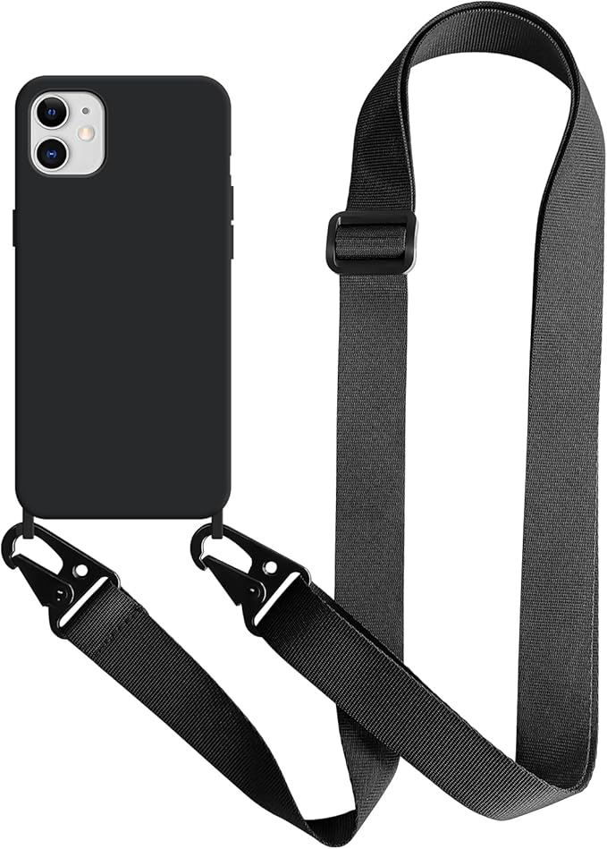 UnnFiko for iPhone X ケース ネックストラップ スマホケース 蛍光色 シリコン アイフォン XS ケース シンプル ソフト 保護カバー 携帯ストラップ 紐付き 斜めがけ (iPhone X/XS, Black)