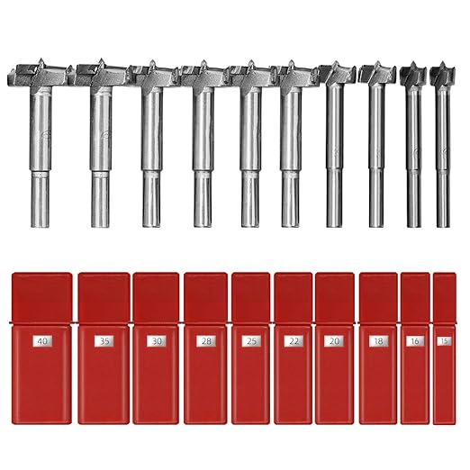 サイズ:15mm、16mm、18mm、20mm、22mm、25mm、28mm、30mm、35mm、40mm。ボアビットの毎本ドリルにサイズを記載しており、簡単にほしいサイズを見つけります。