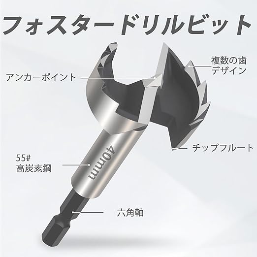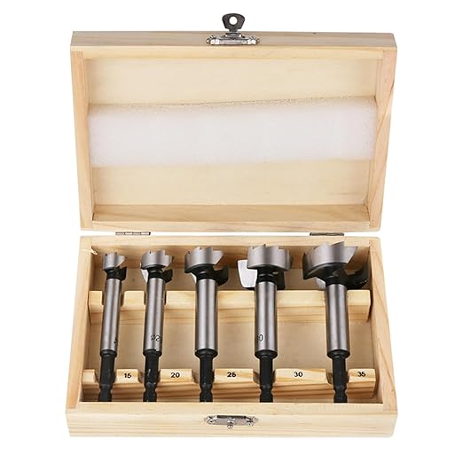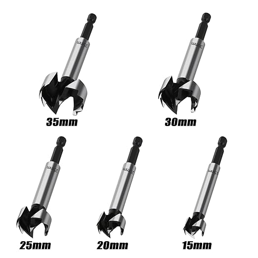 5本組 木工用ドリル 15/20/25/30/35mm 座ぐりドリル 6.35mm六角軸 炭素鋼工具ドリルビットセット ボアビット フォスナービット木材切削用