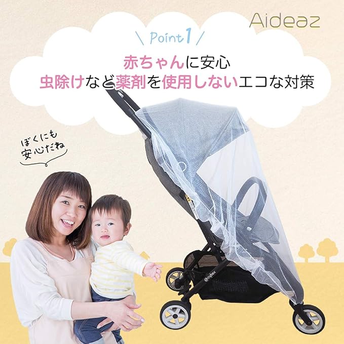 【虫除け・日よけカバーで、一年を通してベビーカーを安全な空間に】大切な赤ちゃんを蚊や蜂などの害虫から守り、ベビーカーでのお散歩や、快適なお出かけを手助けする虫除けメッシュカバー。蚊帳としての機能はもちろん、日よけカバー、風除けカバーとしての役割も果たす、季節関係なく一年を通して使える便利なアイテムです。