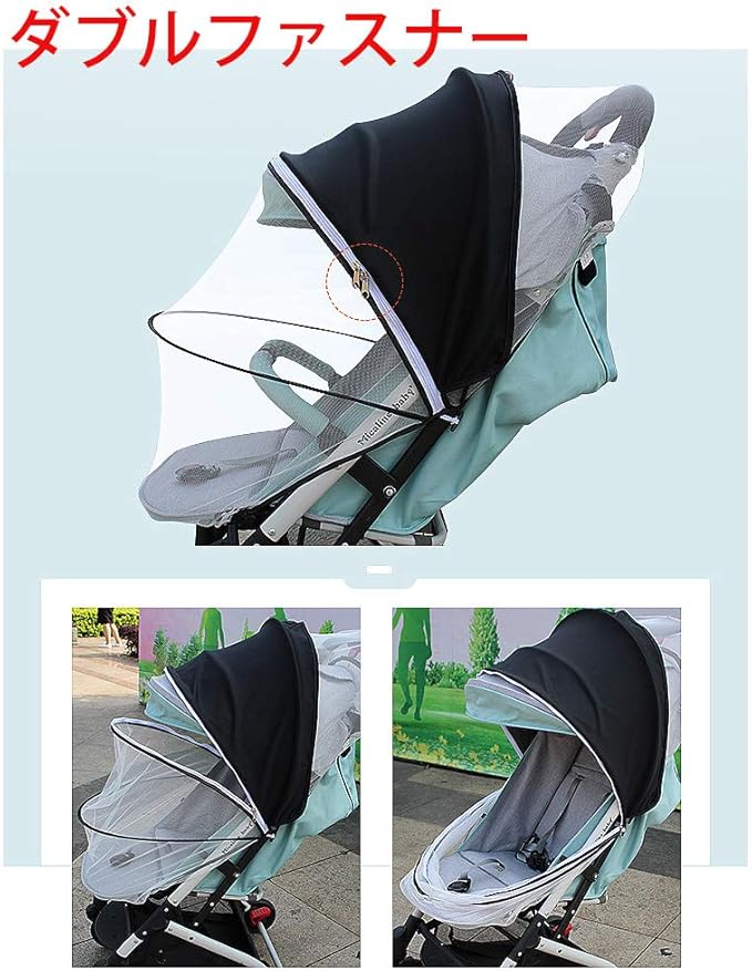 【細かいの虫よけネット】蚊帳が網状質ので、風を通して害虫は通さない細かなメッシュ素材を採用、細かいネットが蚊の侵入を防ぎます。ベビーカー全体を360 覆うことができ、取り付け、取り外しも簡単です。